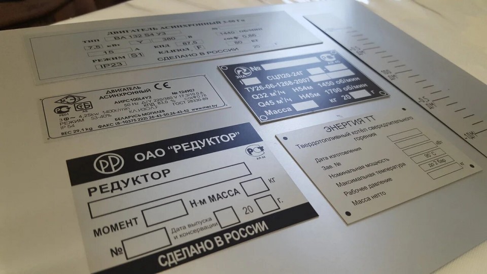 Шильдами называют информационные таблички, на которых прописывают информацию об изделии. Наноситься может практически любая информация, включая технические характеристики, дату изготовления, марку, логотип фирмы и пр. Мы изготавливаем нашу продукцию на анодированном алюминии.